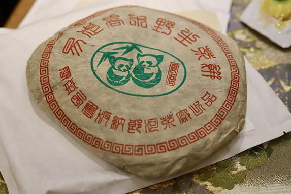 时隔两月,再度于老友处蹭得数泡好茶——郎河茶厂2000年的易武乔木野生茶。因棉纸包装上印着憨态可掬的国宝熊猫,茶友们便亲切地称它为“易武熊猫饼”。
